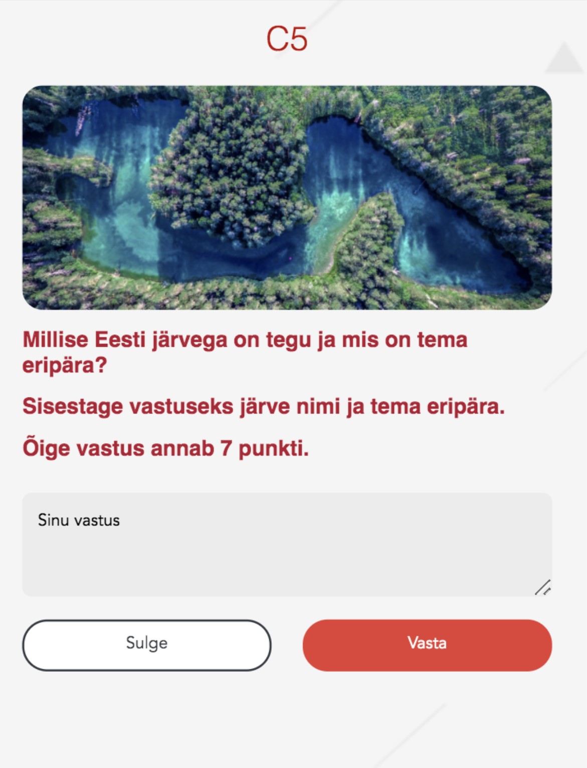 Vale vastuse korral lukustub küsimuse ruut 5 minutiks, mille järel
